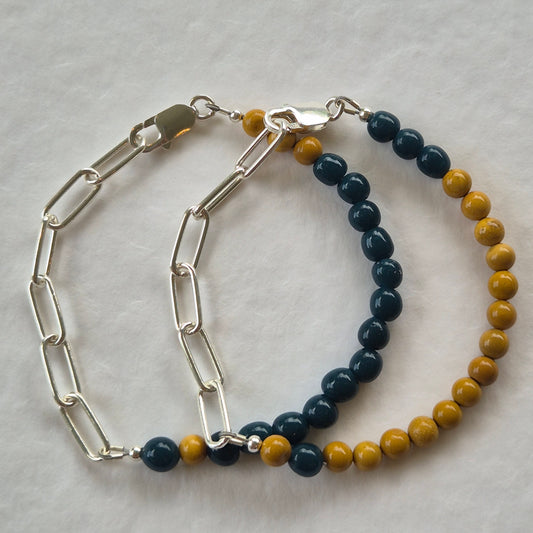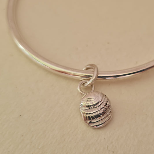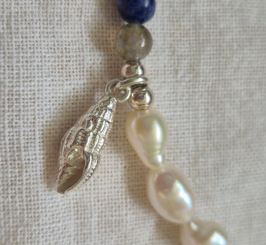 Spiral shell charm on a gemstone and keish pearl bracelet