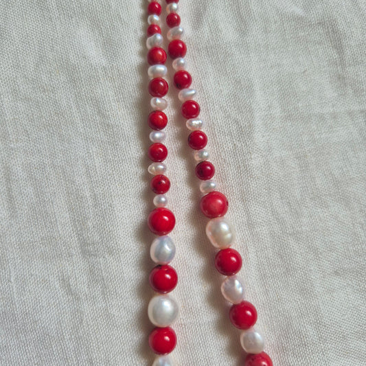 Red coral beads & Freshwater Pearls