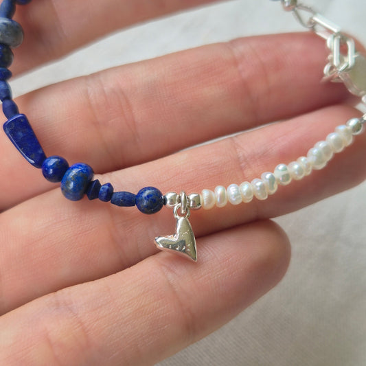 Lapis Lazuli Bracelet with Sandcast heart
