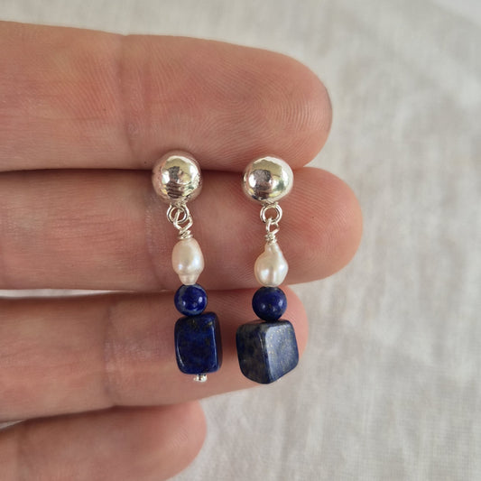 Lapis & Keshi Pearl Studs