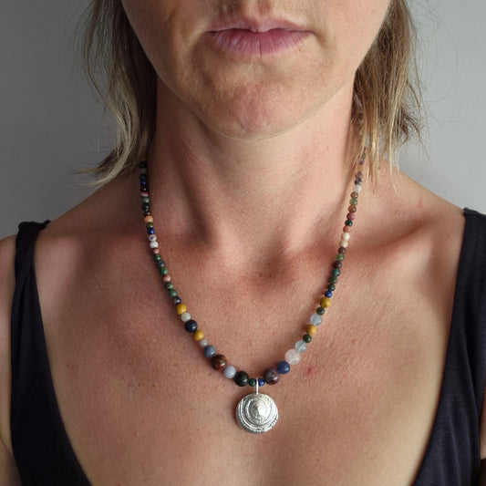 Abalone Organic Sandcast Pendant with Mixed Bead Necklace