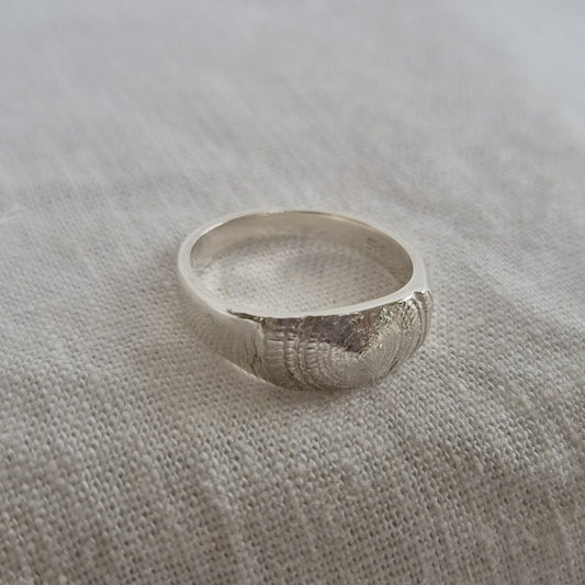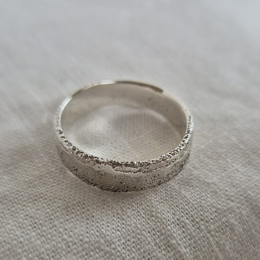 Individually sandcast in sterling silver, with naturally formed textures unique to every ring.