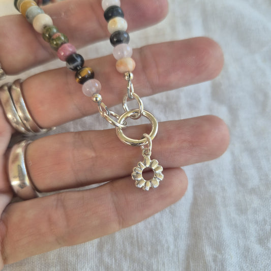 Rondelle Gemstone Bracelet with Mini Sunburst Charm