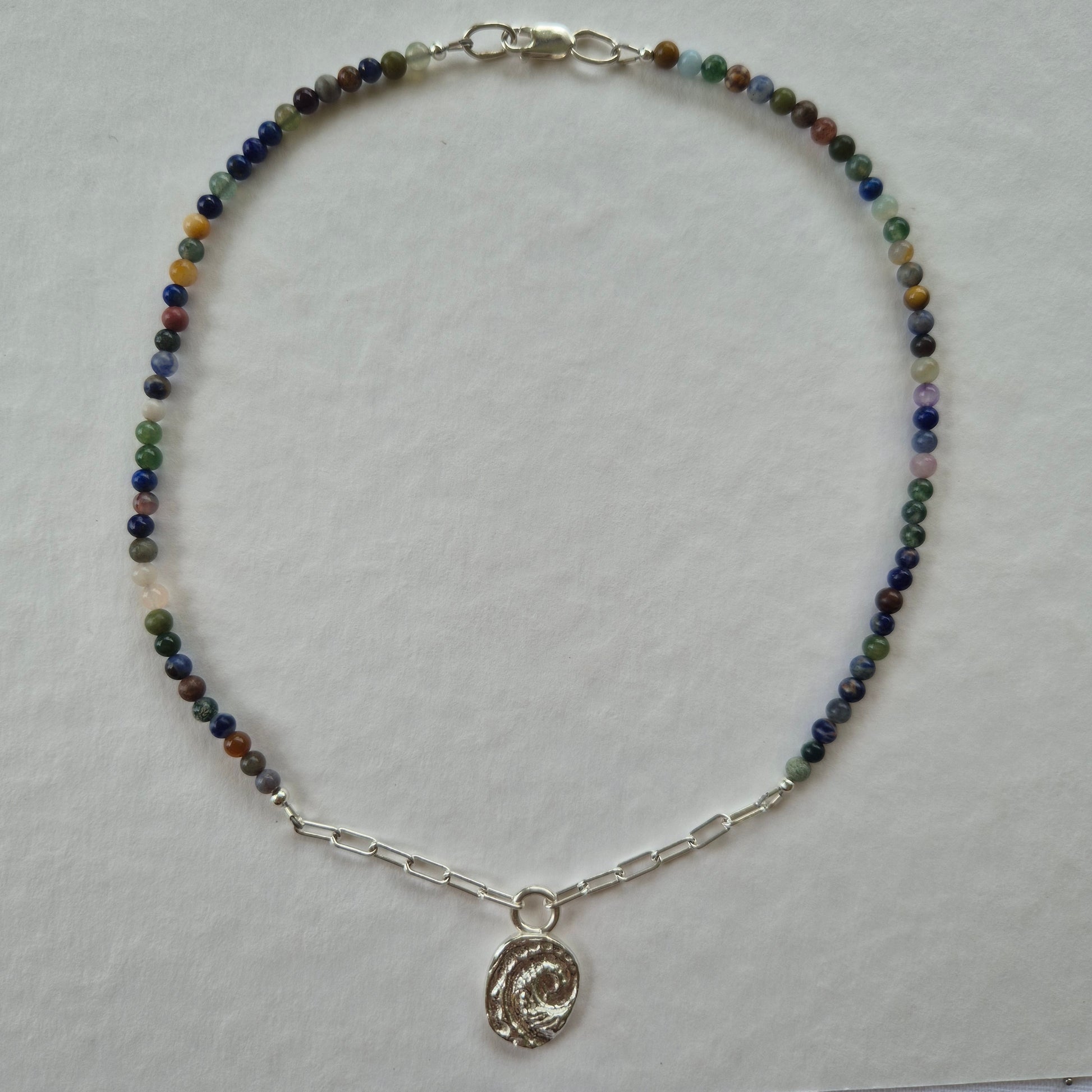 Abalone Organic Sandcast Pendant with Mixed Bead Necklace