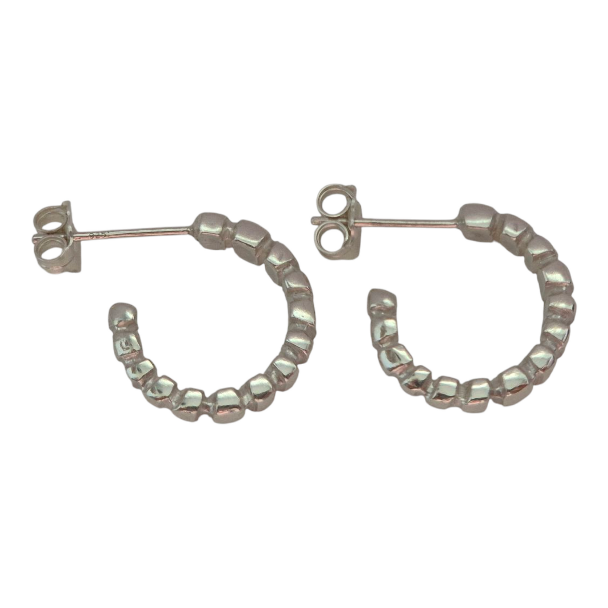 Handcrafted from solid sterling silver with a 15mm diameter, the Saltworn Crescents echo the texture of ocean-worn relics, shaped by tide and time.