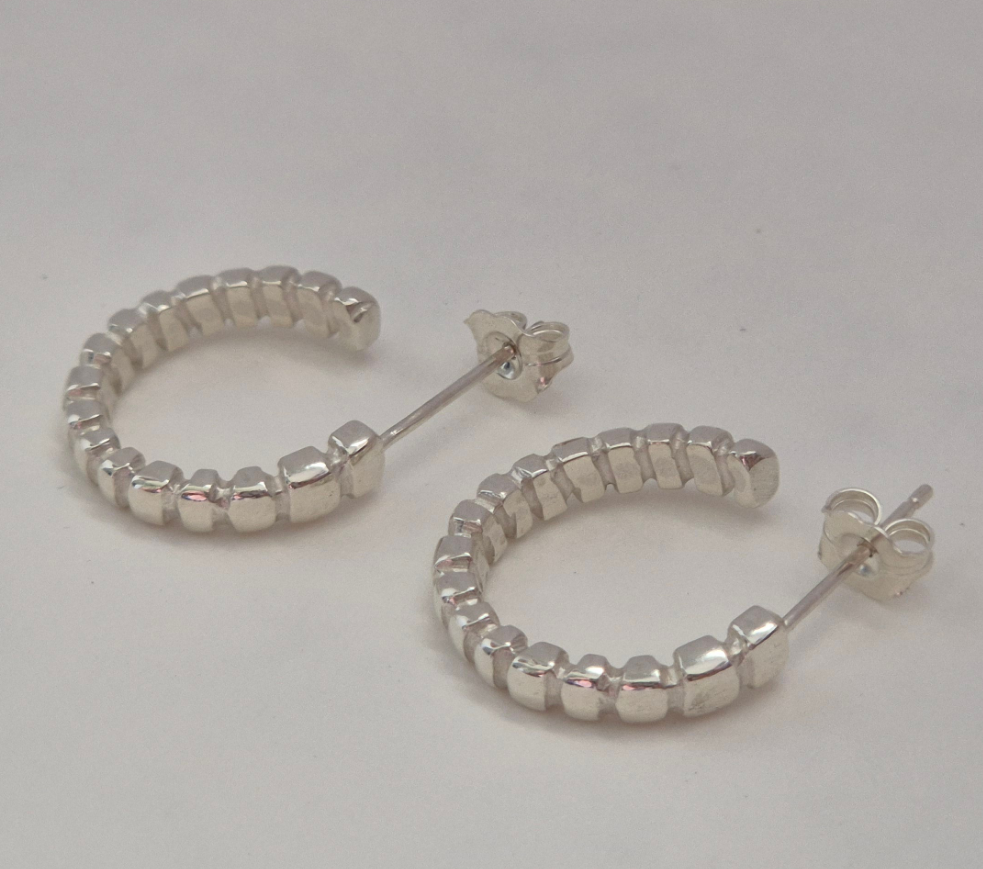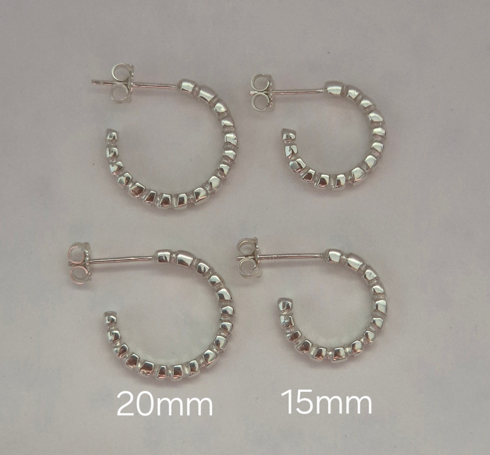 Handcrafted from solid sterling silver with a 20mm diameter, the Saltworn Crescents echo the texture of ocean-worn relics, shaped by tide and time.