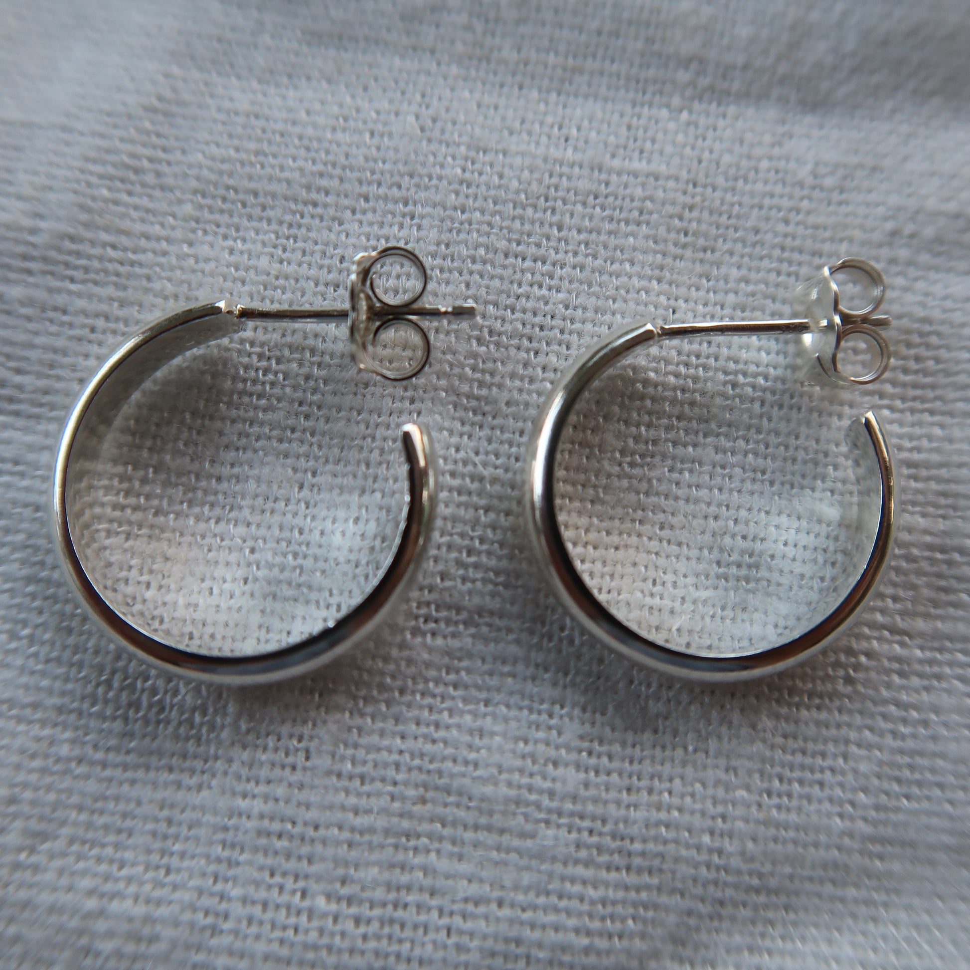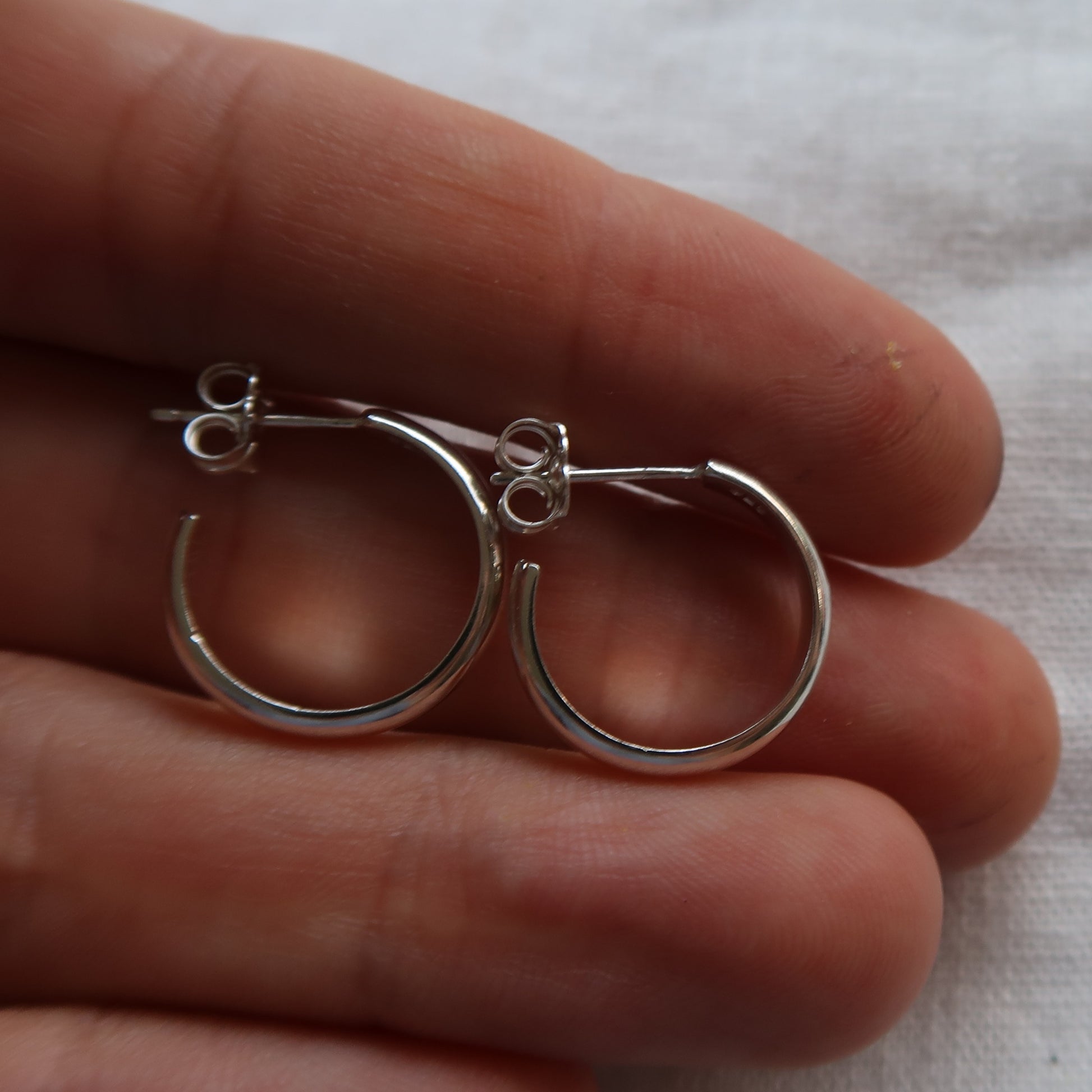 Minimal and timeless, these sterling silver studs are hand-formed from solid half-round wire, offering a subtle curve that catches the light just right. Perfect for everyday wear or layered with other earrings for an effortless look.