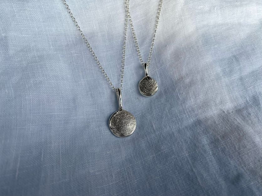 Solid sterling silver pendant with your own unique impression, choose between pendant only or your desired length of chain.