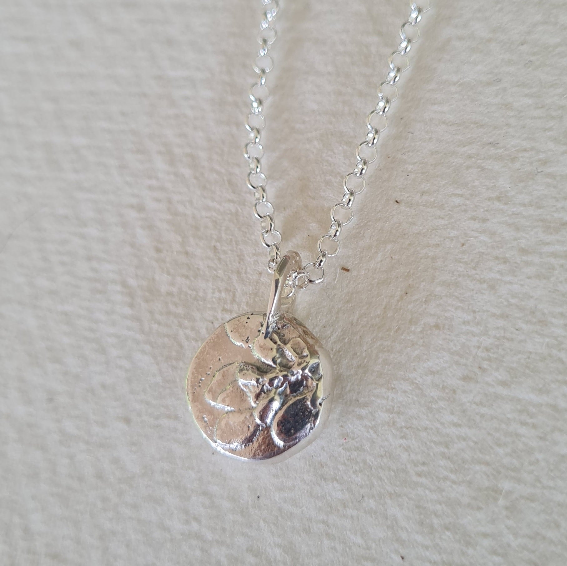 Sandcasted and crafted with care, this dainty piece exudes elegance, measuring 1cm wide and accompanied by a 45cm sterling silver chain.