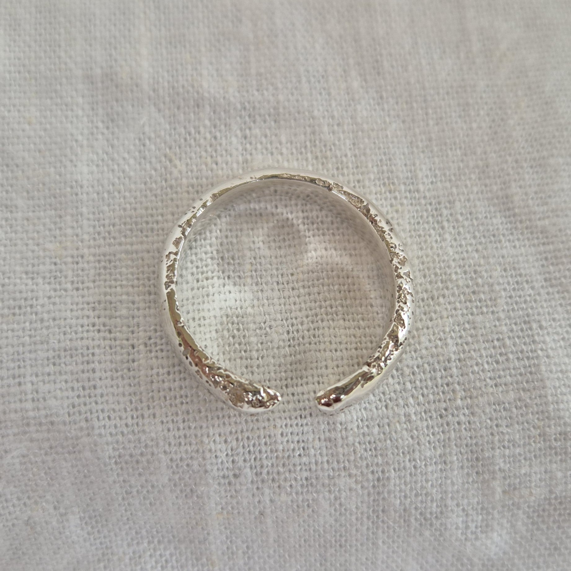 Sandcast in solid sterling silver, this open-style ring features organic surface texture formed naturally during the casting process. Made using beach sand from Cairns, it carries subtle grains and markings that make each piece one of a kind. The open design allows for a small amount of adjustment while maintaining a comfortable fit.