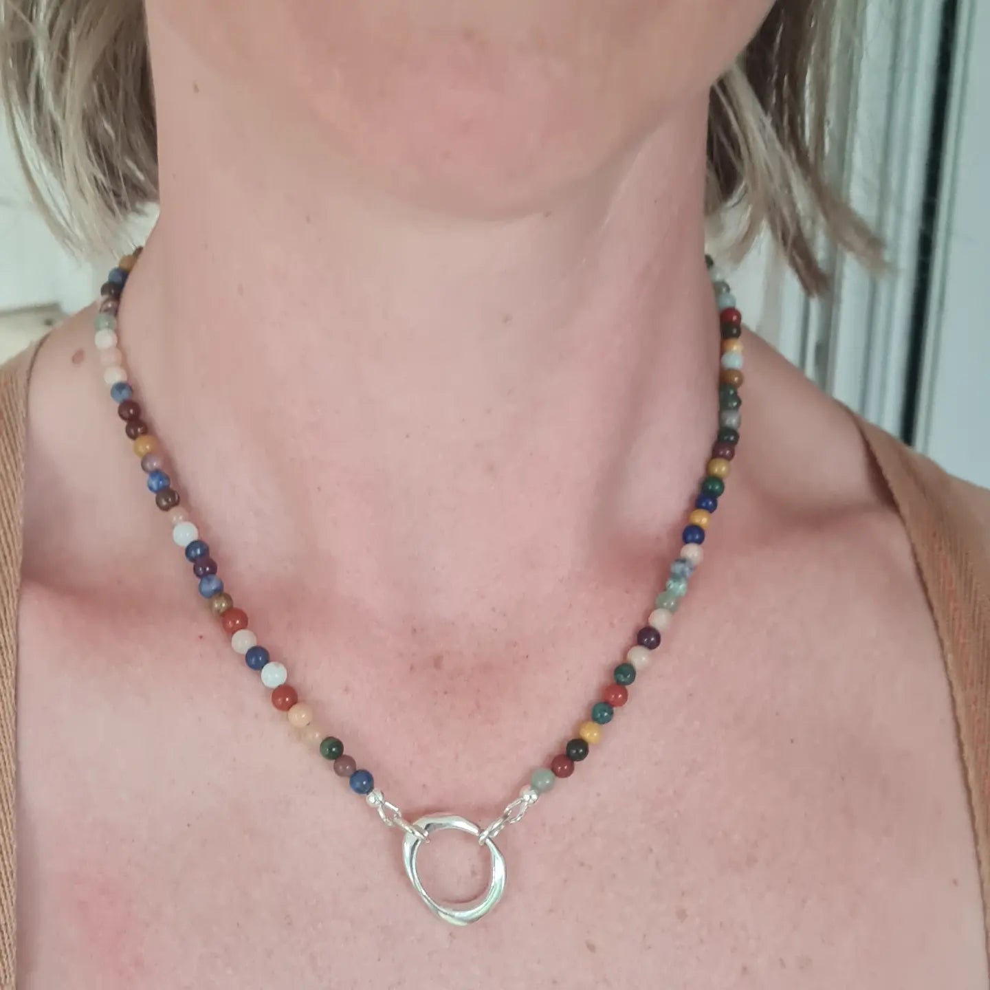- Materials: Solid sterling silver pendant, mixed gemstones