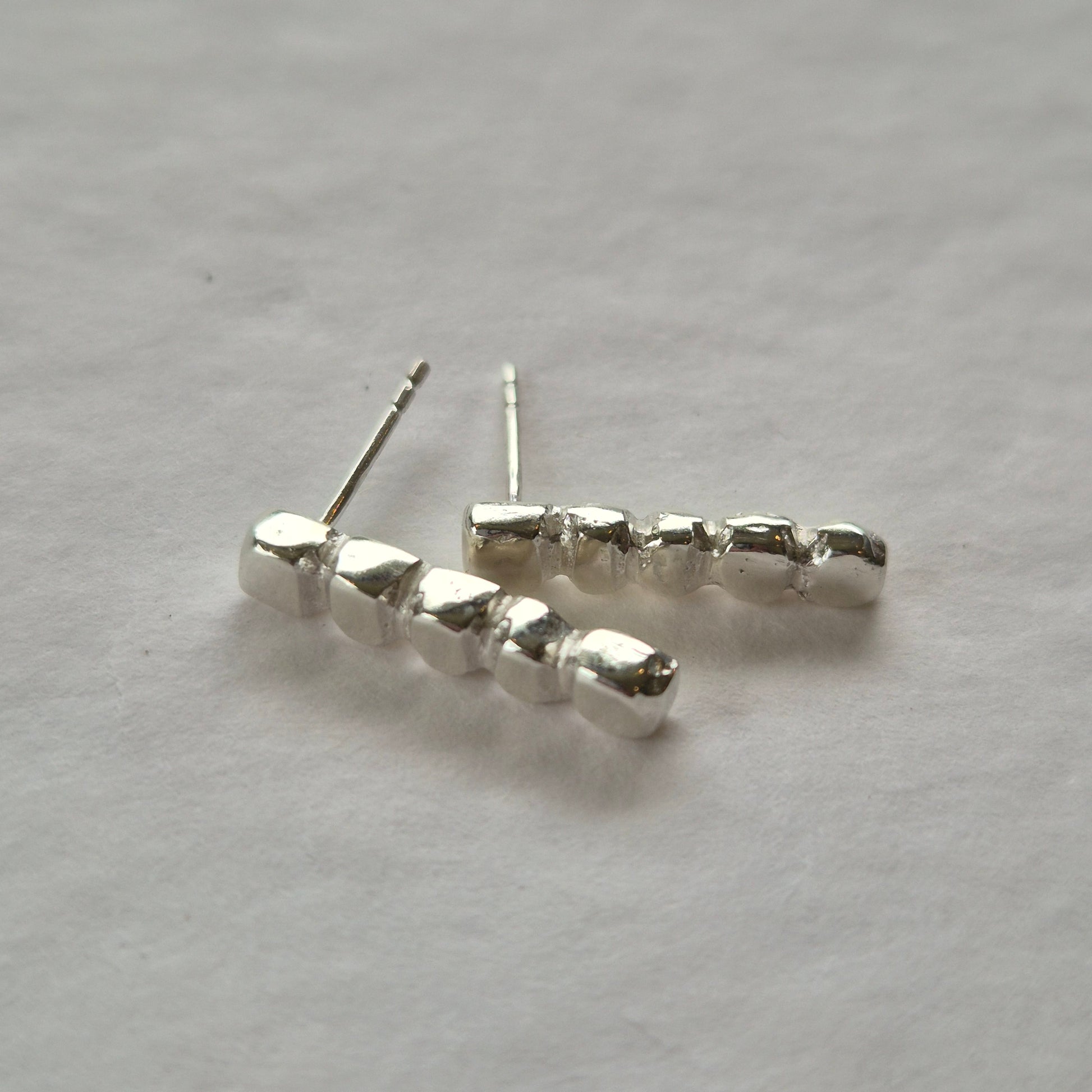 Handcrafted solid sterling studs, sandcast from a handcarved wax mould in my garage studio.