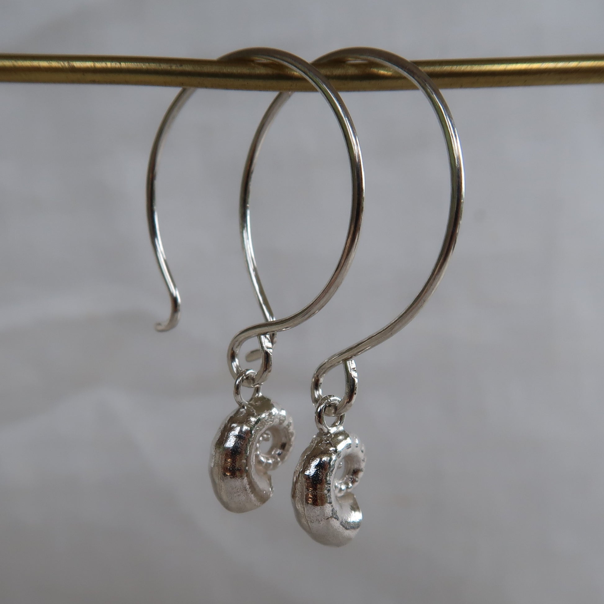 Handcrafted in solid sterling silver, these hoops feature a unique spirula charm cast from a real Spirula shell - a deep-sea species occasionally found washed ashore at Mission Beach, Far North Queensland. Each charm captures the shell’s natural spiral form, bringing a subtle oceanic touch to your everyday wear.