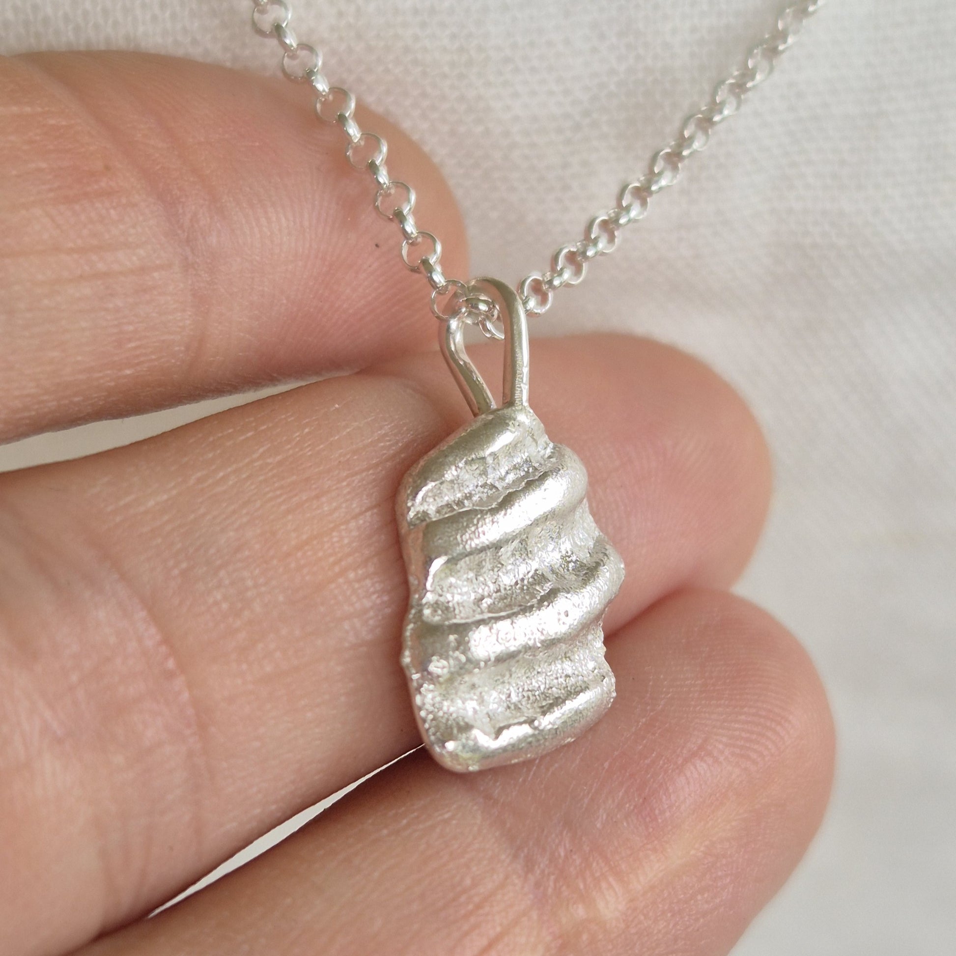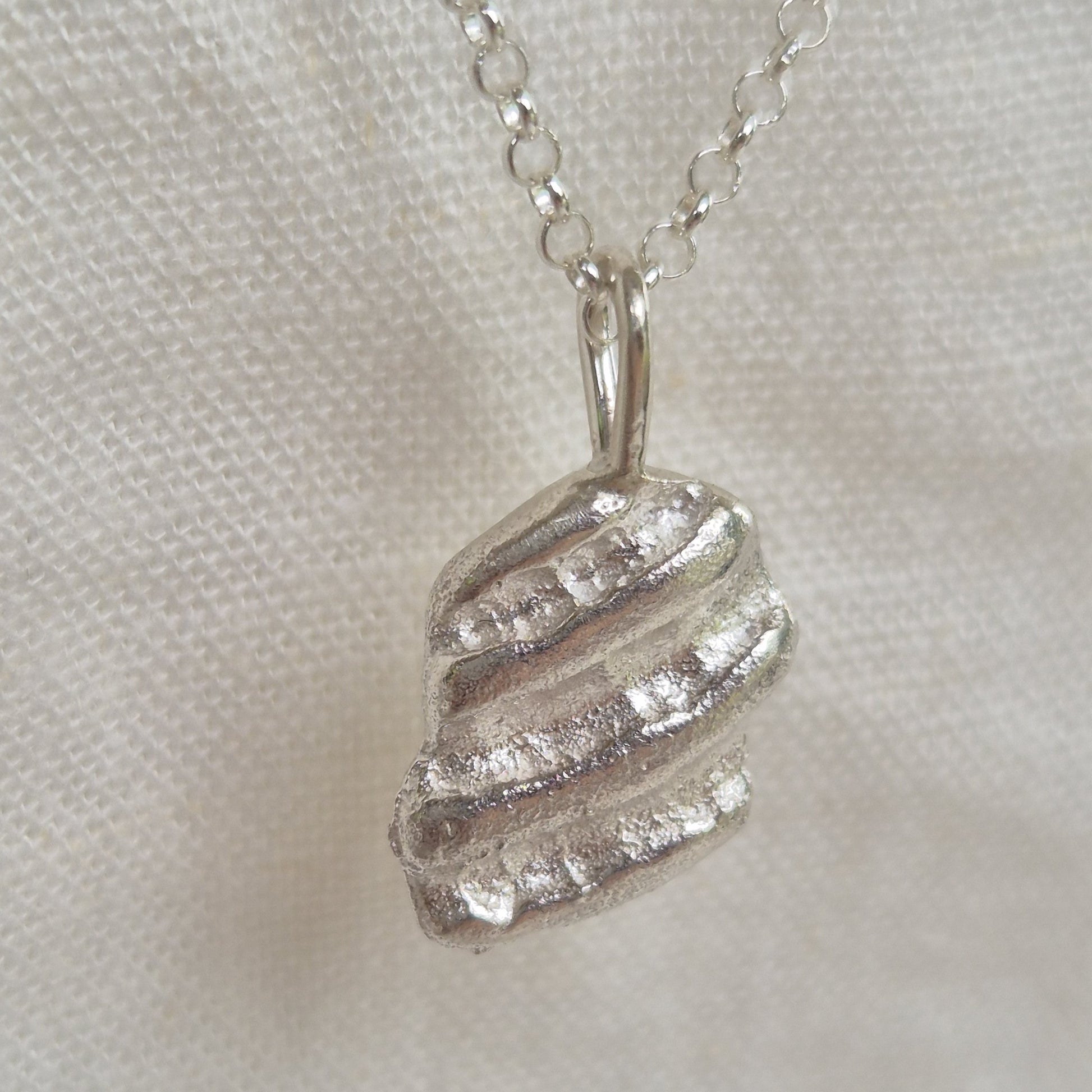 Sandcast in solid sterling silver, this pendant captures the natural beauty of a real seashell fragment. Soft, organic waves echo the ocean it once came from, creating a timeless coastal keepsake. A delicate yet striking design, perfect for everyday wear or a meaningful gift for ocean lovers.