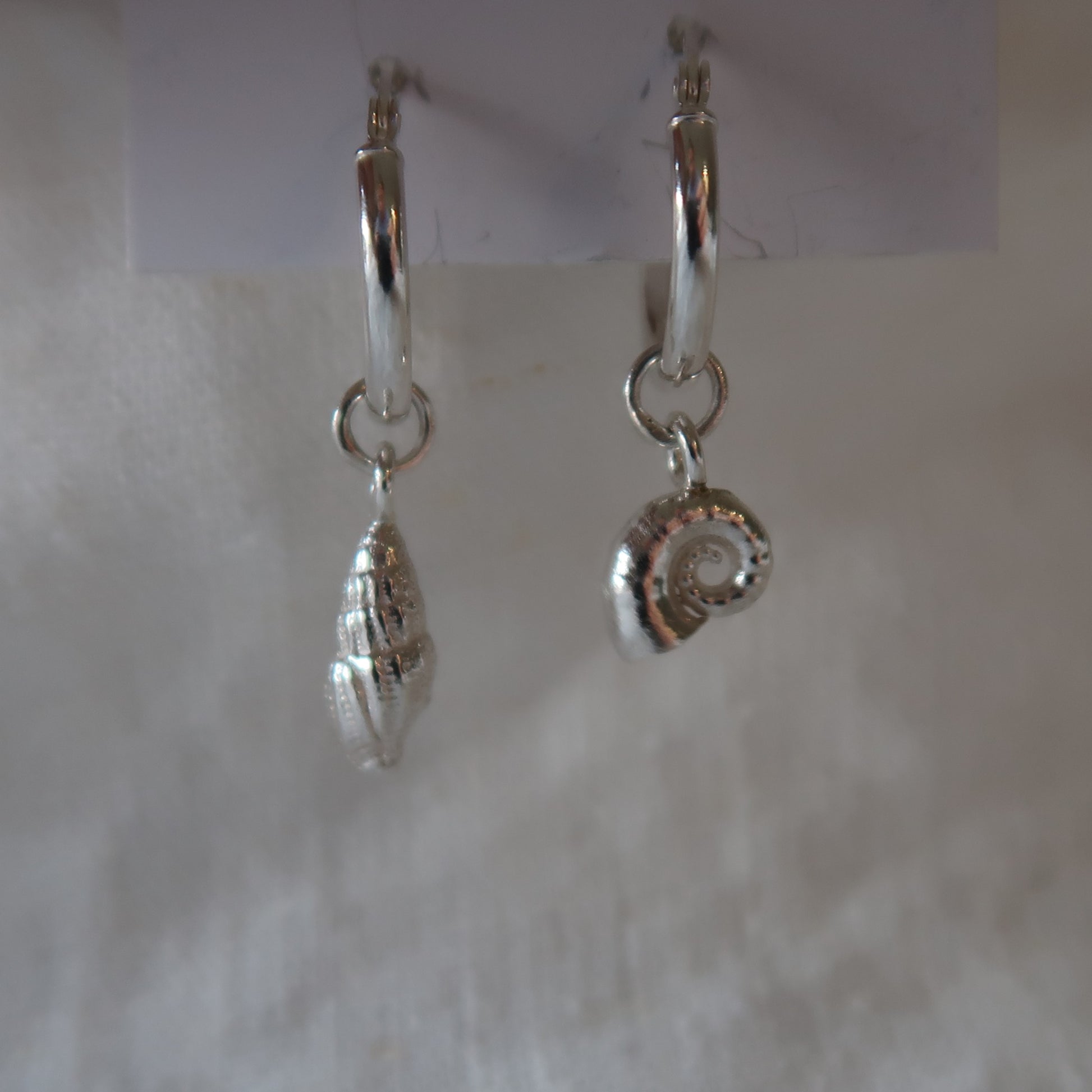 Cast from real shells found on the beaches of Cairns, these earrings capture the natural detail and texture of the coast. Each charm - a spiral shell and a spirula shell. Recreated through the lost-wax casting process in solid sterling silver.