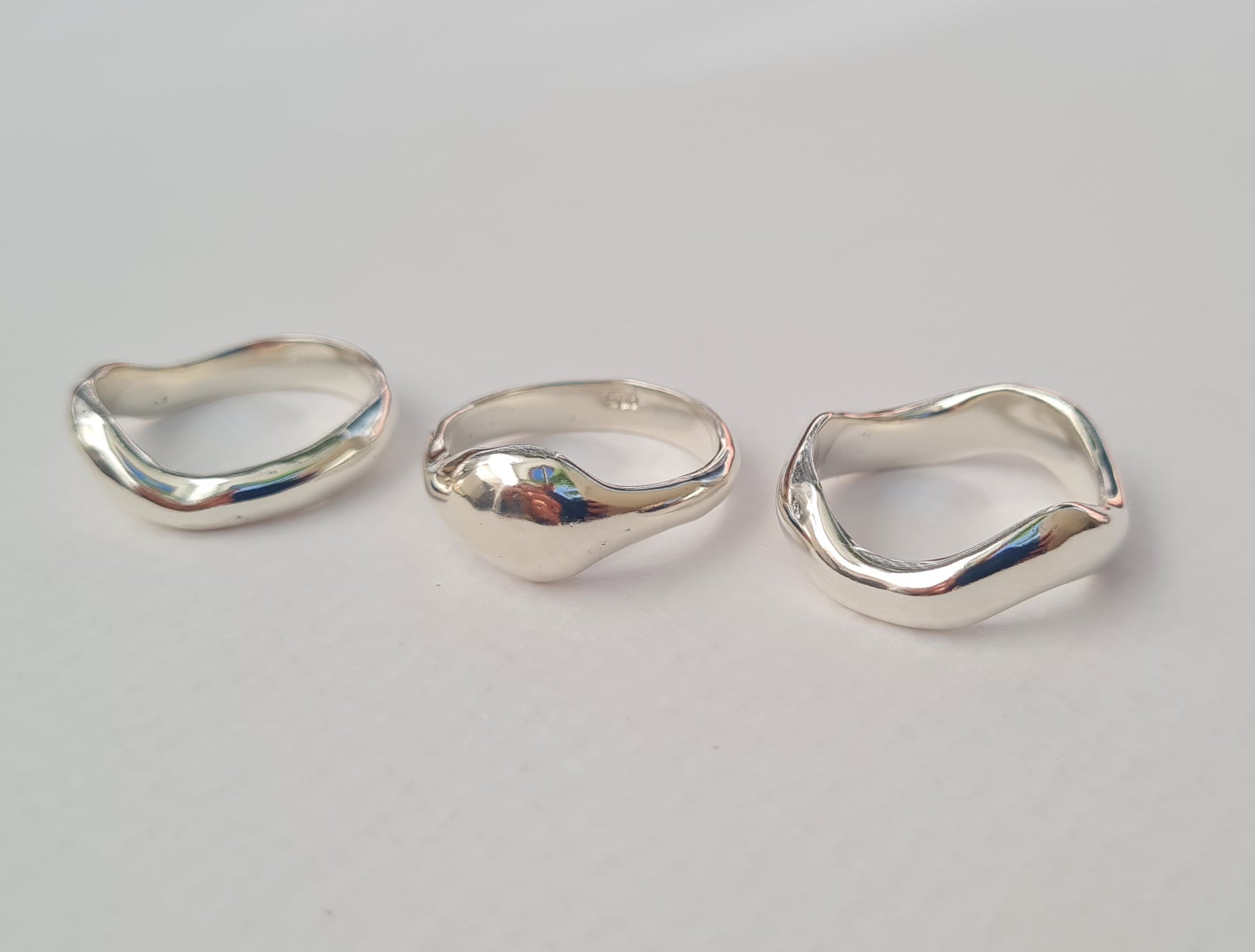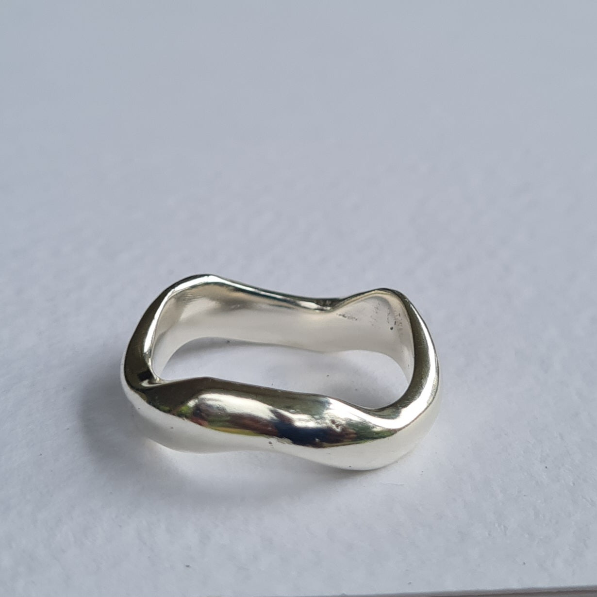 Handcrafted Sterling Silver ring with a bold, organic shape, this piece features a smooth, harmonious design that mimics flow of water.