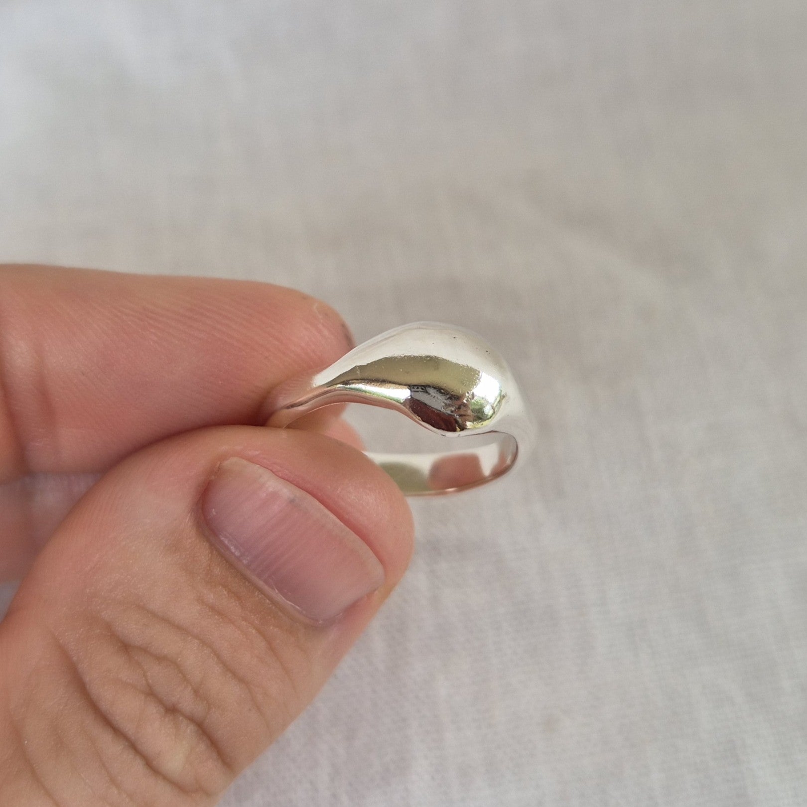 Crafted from solid sterling silver, the Silver Drop Ring captures the essence of a water droplet in motion. Its organic, blob-like shape reflects nature’s beauty and unpredictability.