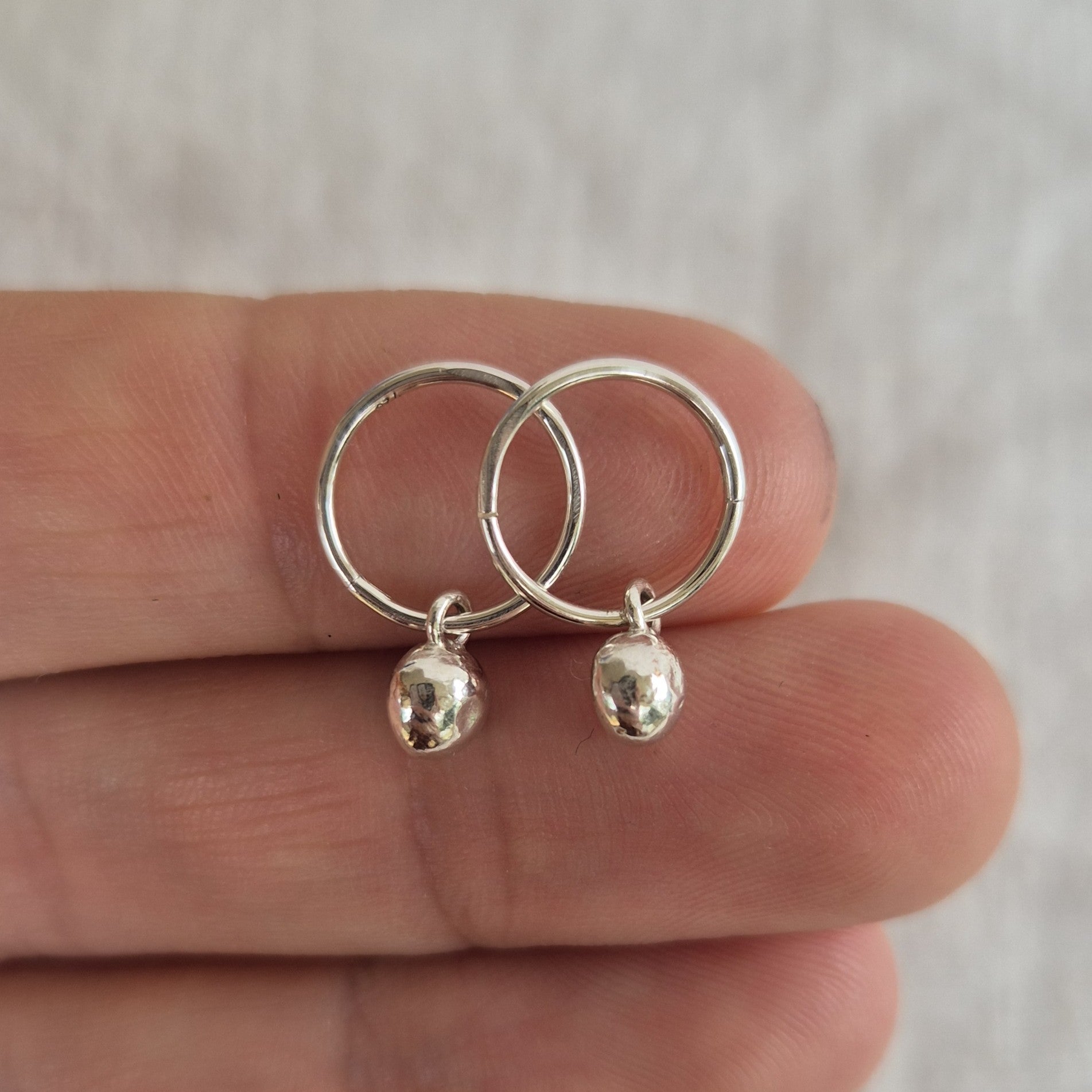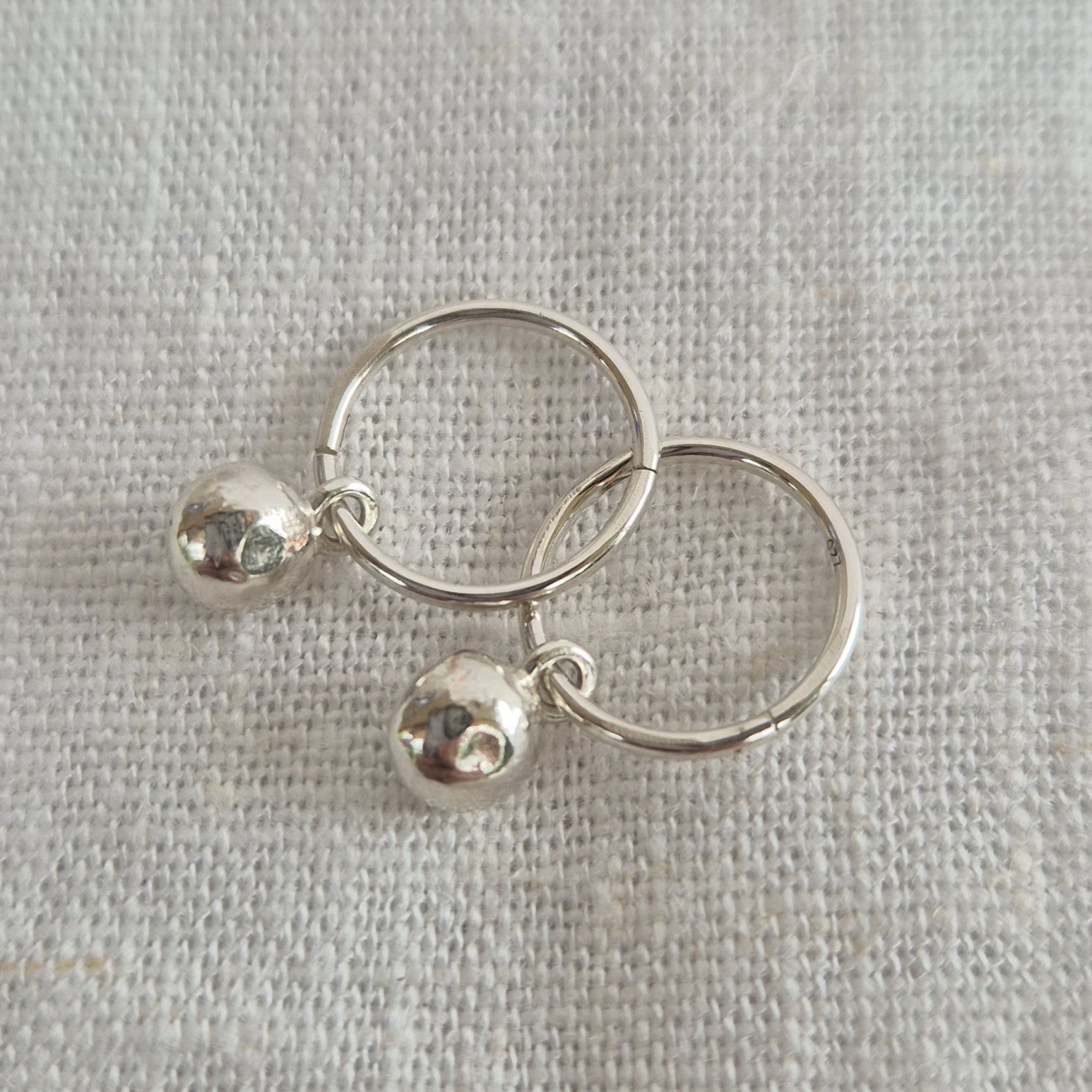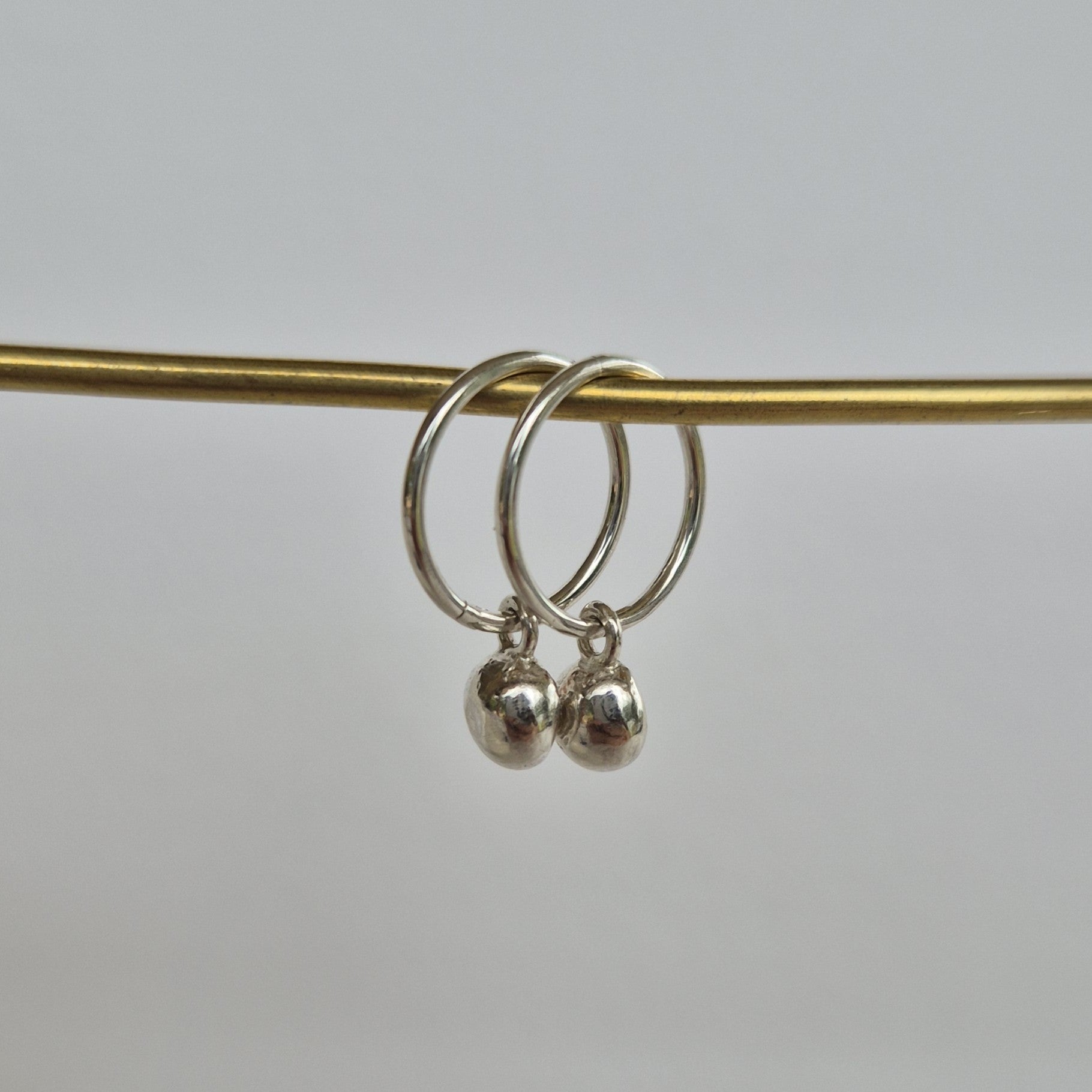 Each small silver ball is hand-melted from reclaimed scrap sterling silver, giving new life to leftover material. Simple and understated, they’re soldered onto 10 mm sterling silver sleeper hoops - an easy, everyday pair with a story of reuse and renewal.