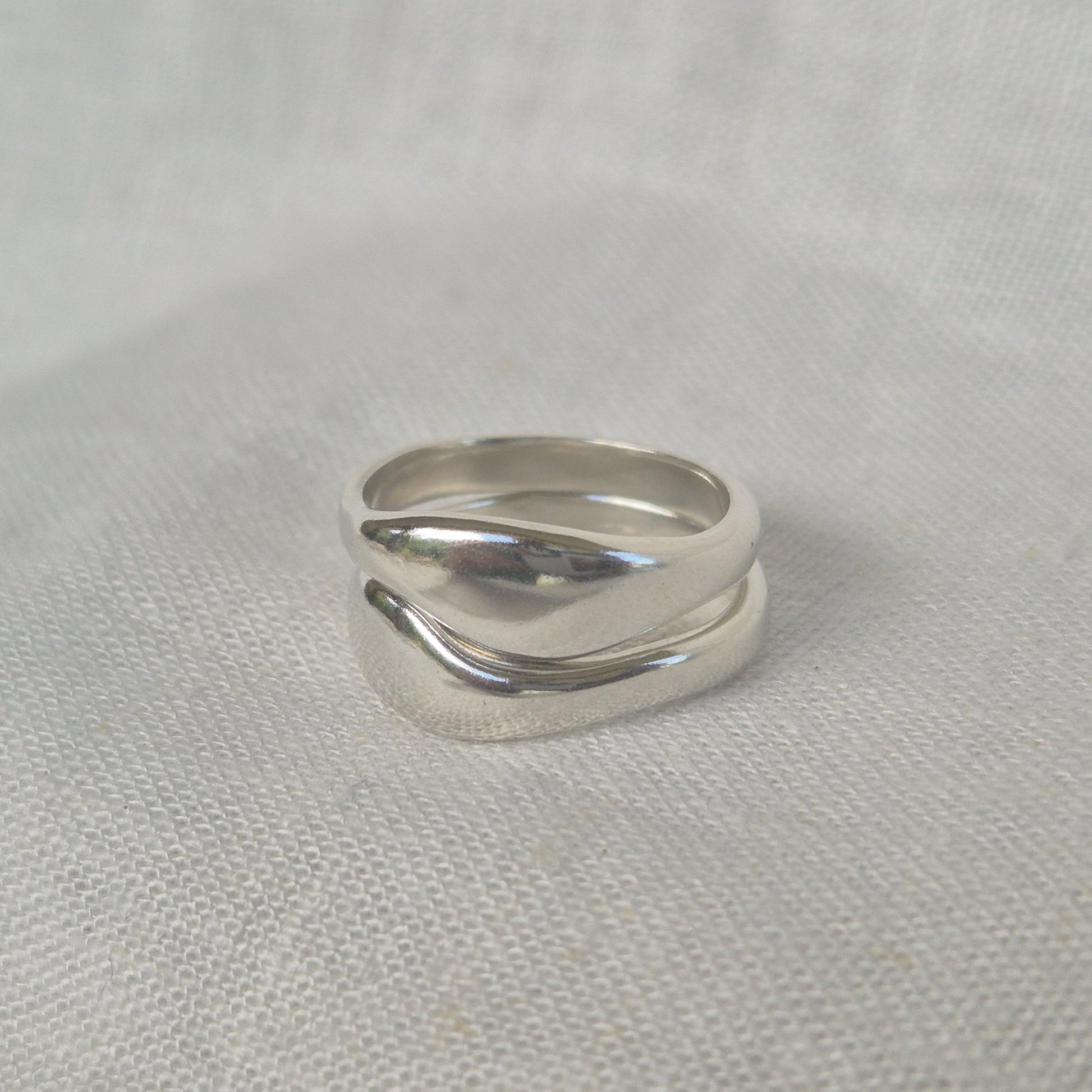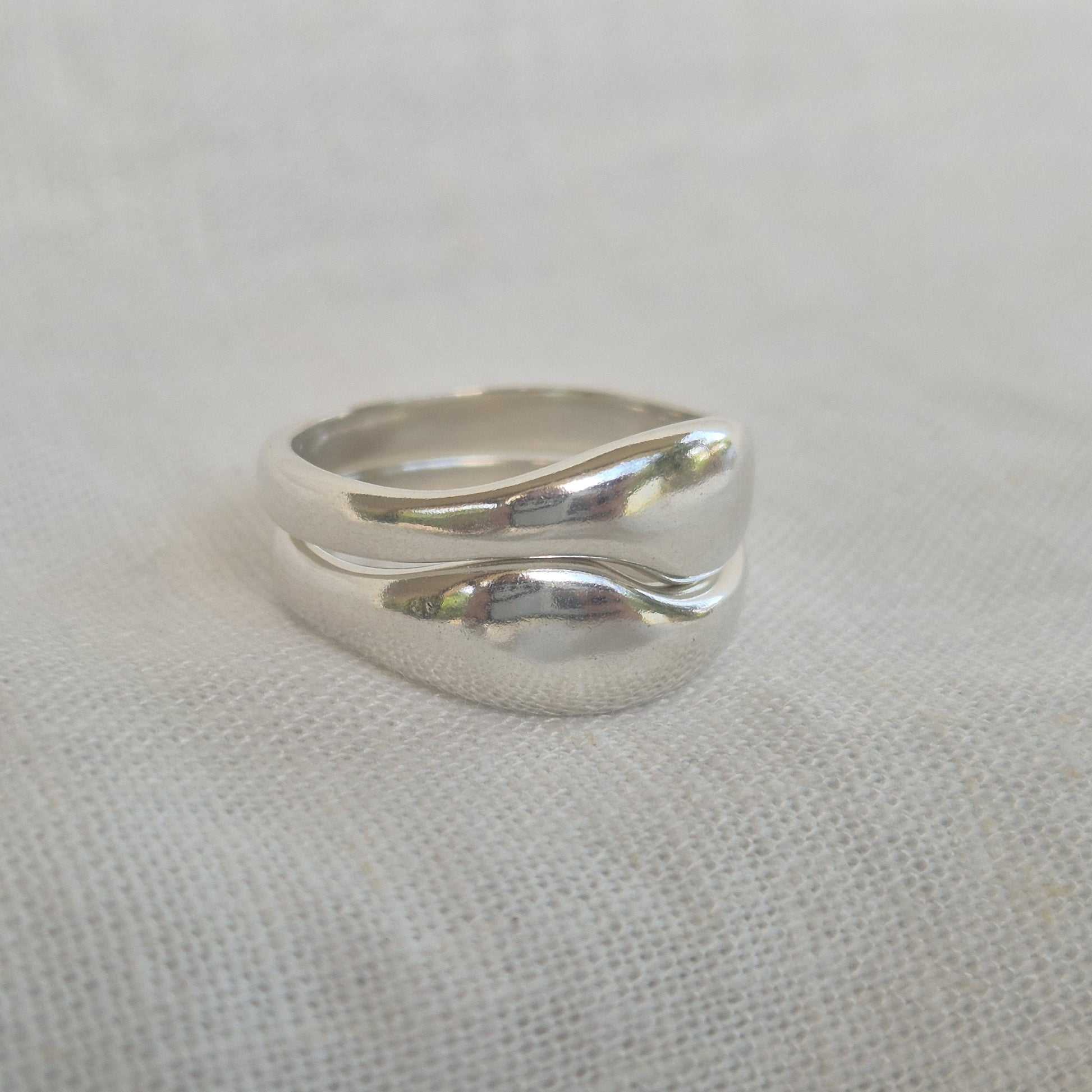 • Style: Organic wave-inspired stacking set (2 rings, same size)