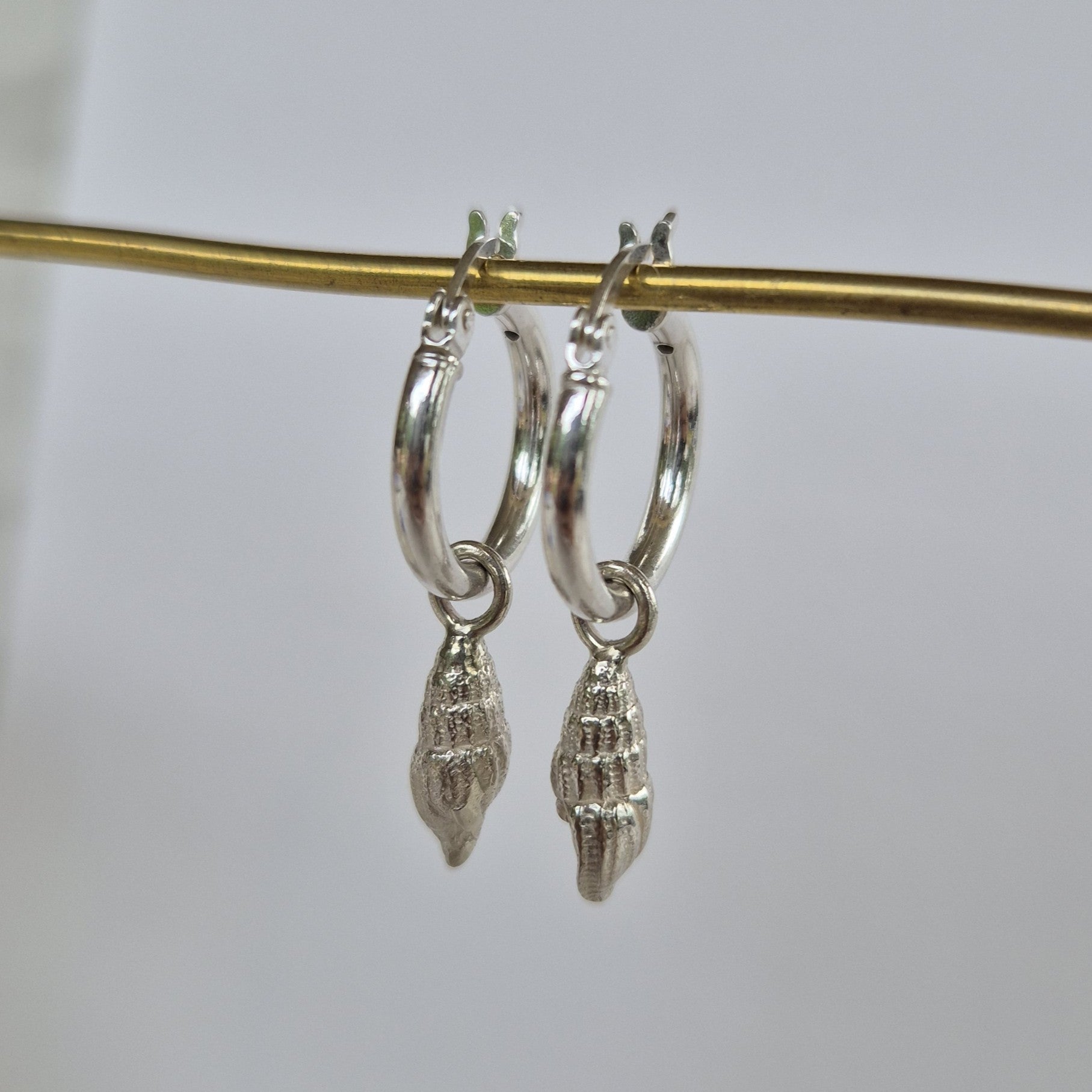 Handcrafted in solid sterling silver, these earrings feature twin spiral shell charms cast from real shells found on the shores of Far North Queensland. Created through the lost-wax casting process, each charm captures the natural spiral form and delicate texture of the original shell.