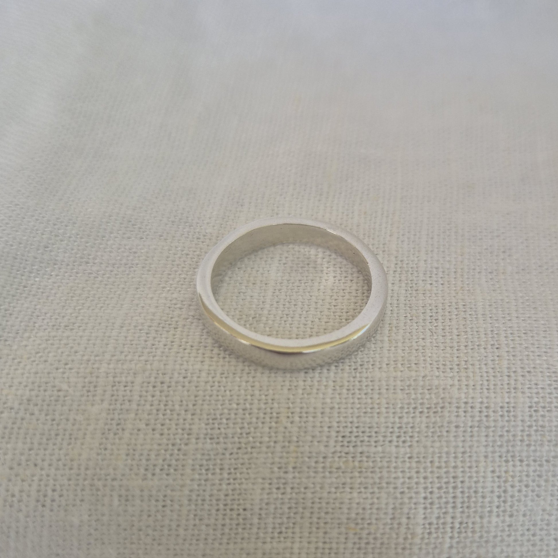 A simple square-shaped band, sandcast individually in solid sterling silver. Each ring forms its own soft edges and natural markings through the casting process, giving it an organic feel while still holding a clean, minimal shape.