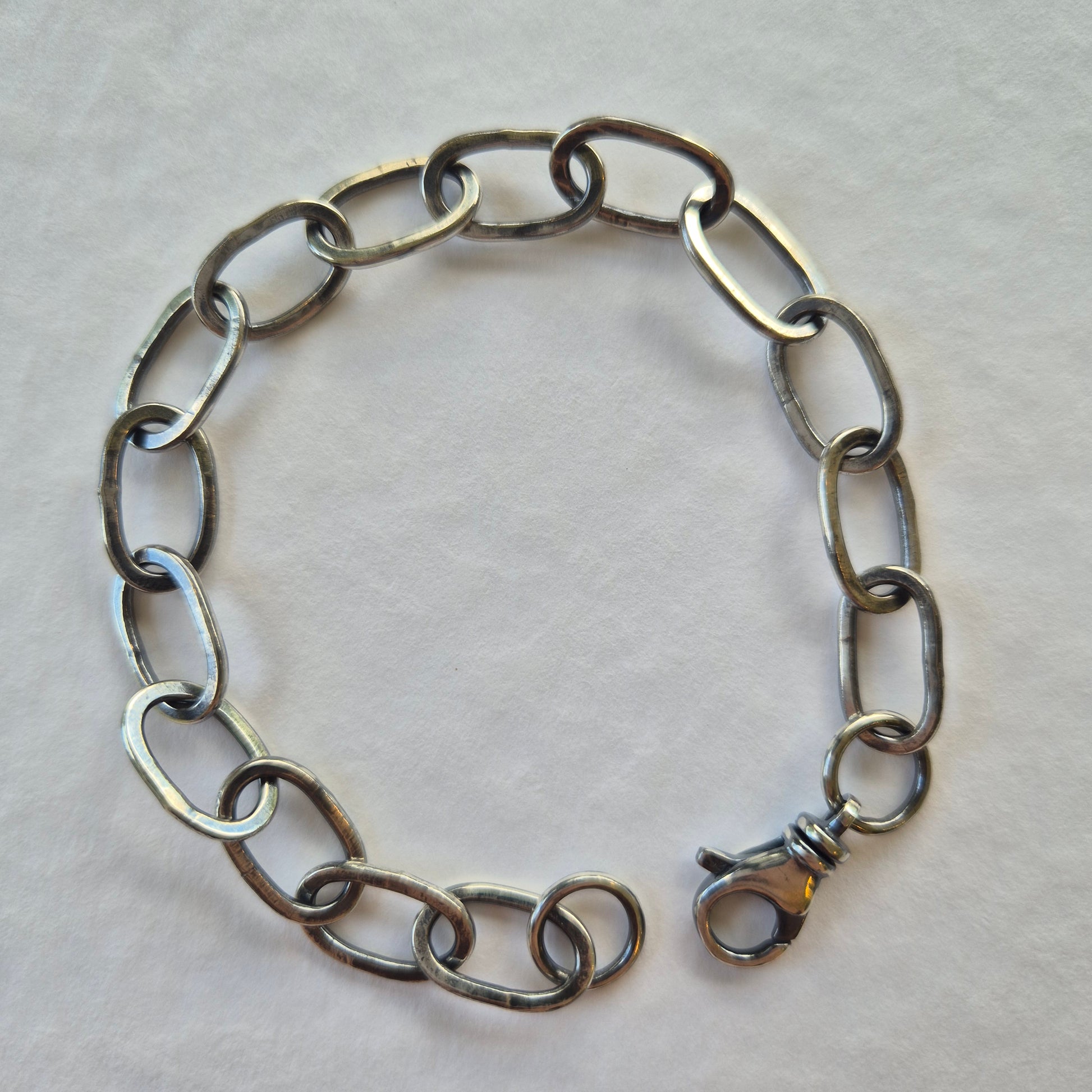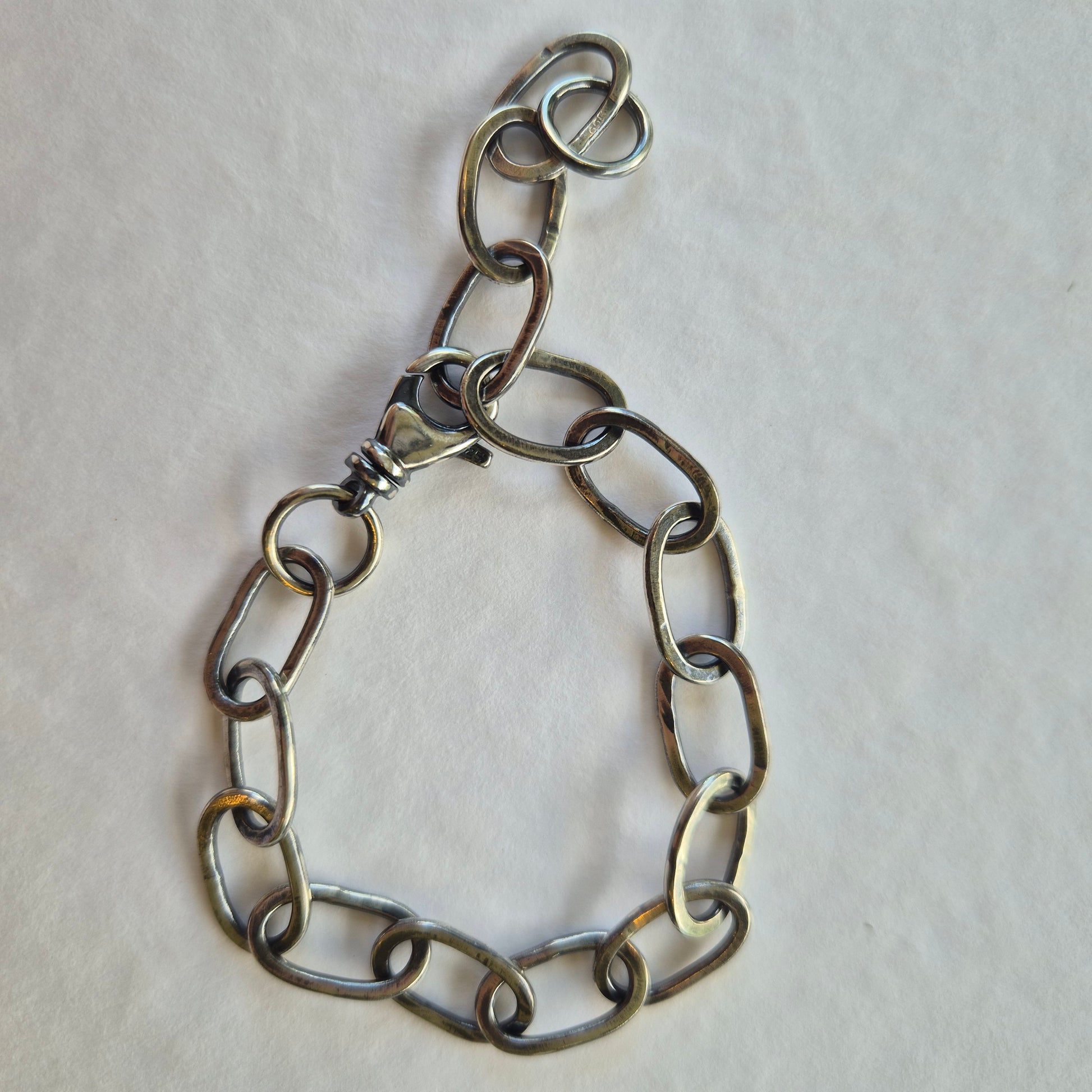 Lovingly handcrafted using sterling silver, each link measures approximately 1.5 x 1cm. Hammered for a unique texture, patina to bring out all the beautiful textures.