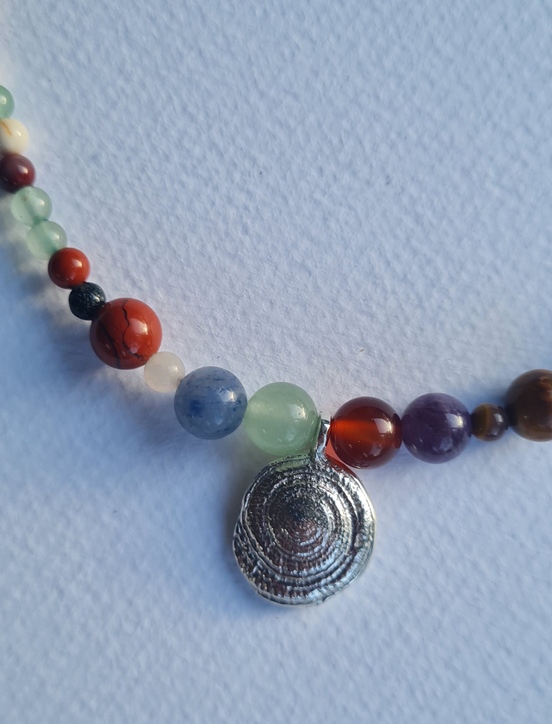 Sundial Shell Sandcast Pendant with Mixed Gemstones